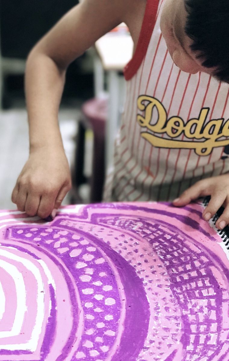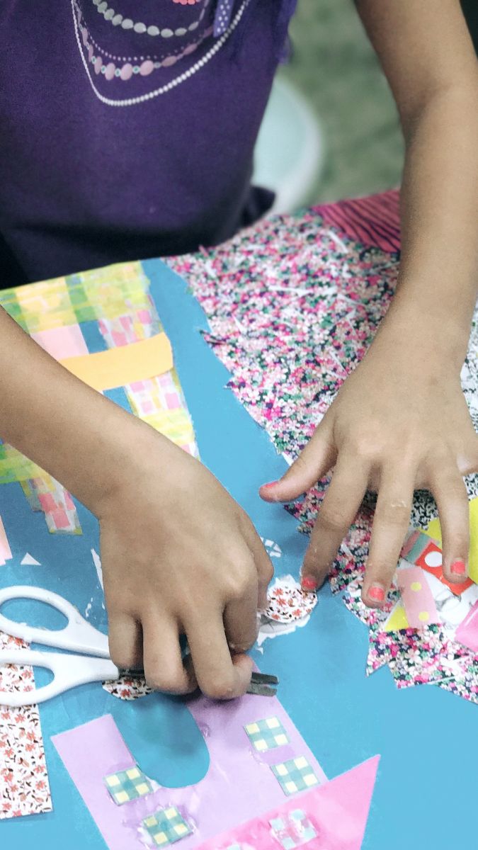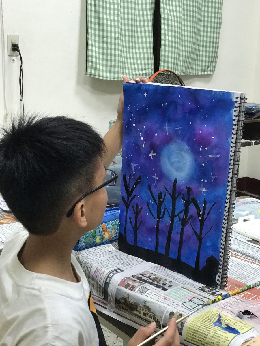 繪畫老師教我們畫風景、點描畫、水彩畫、拼貼畫等